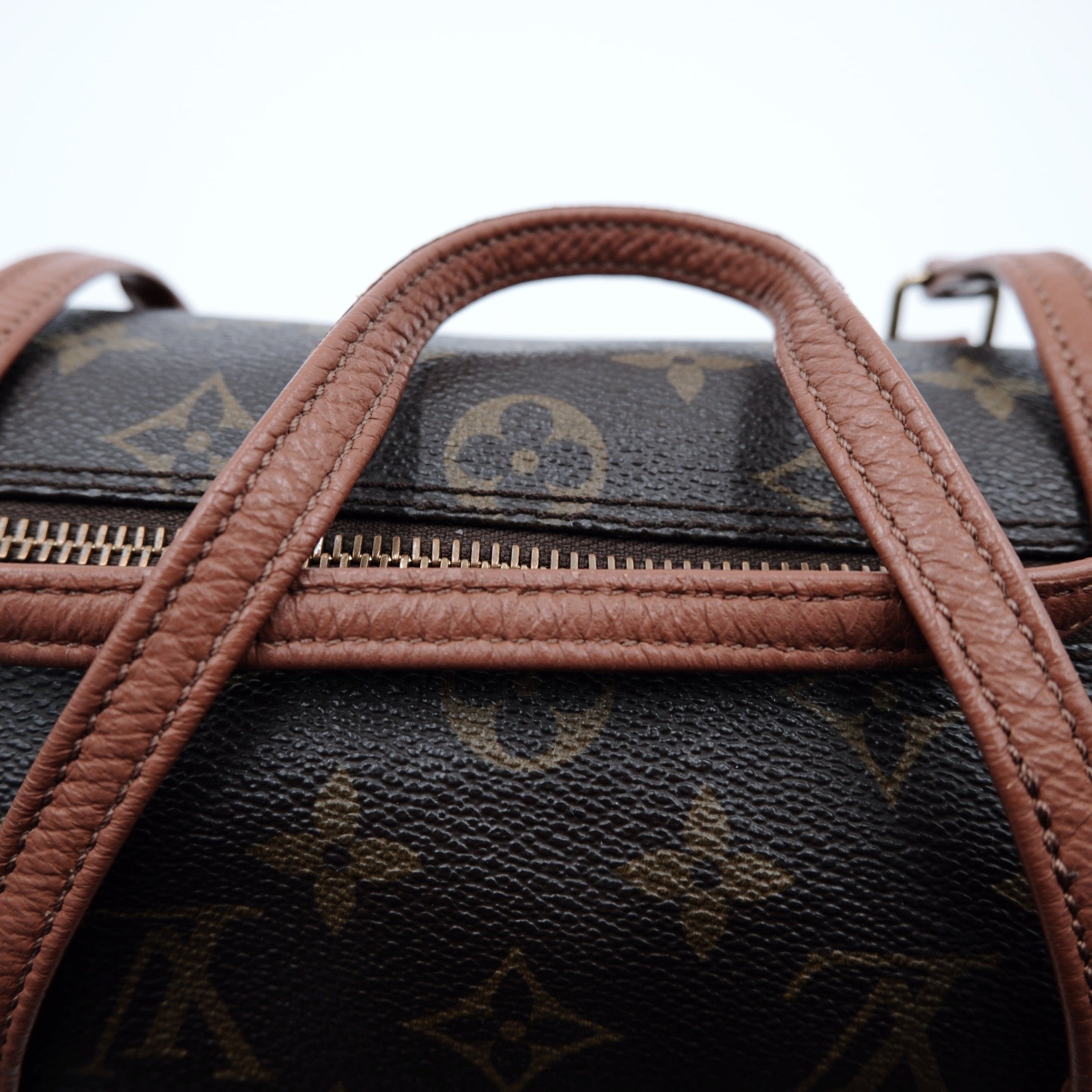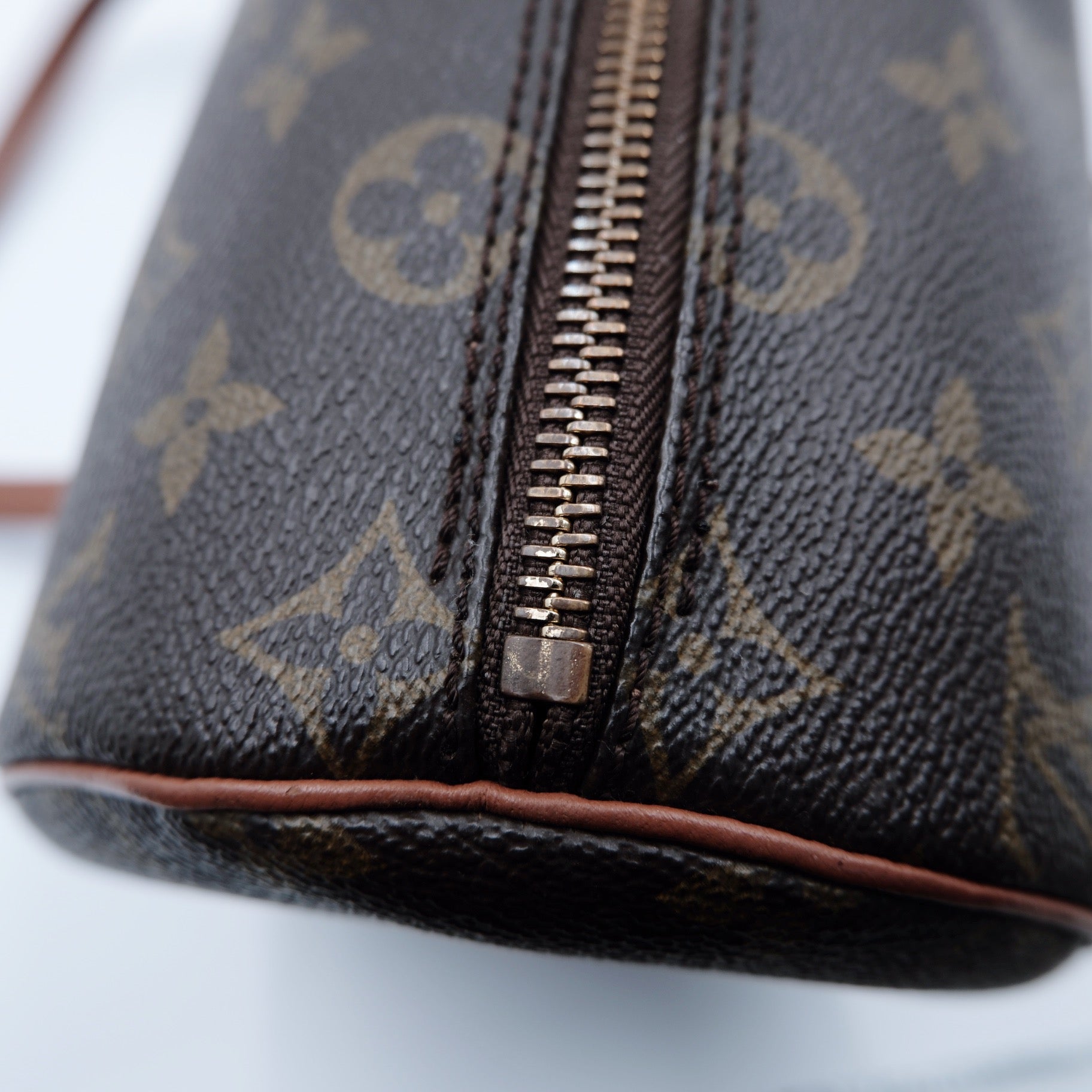 Other notes: Exterior canvas is clean. The handles have minor misshapping and minor cracks, but are in overall great condition. Metal hardware has some tarnishing and scratches as seen in the photos.